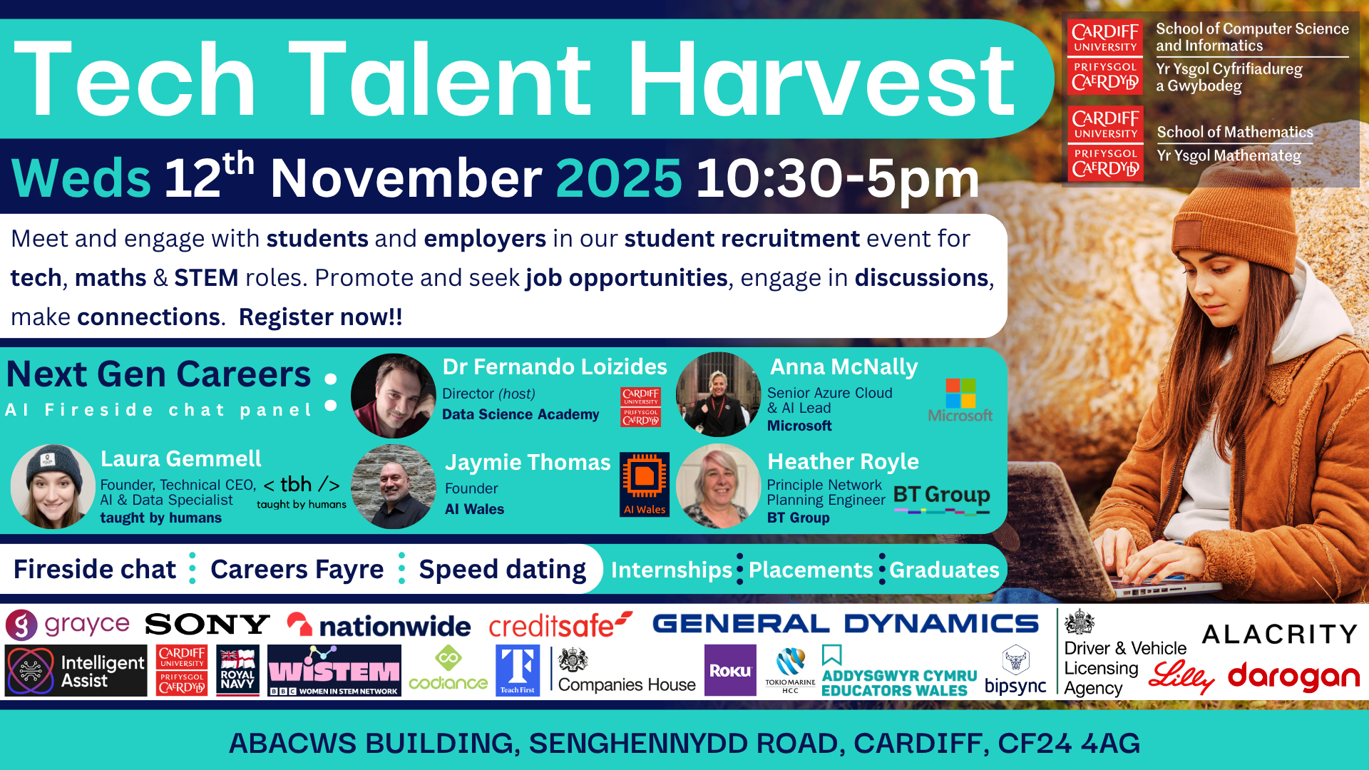 Mae'r digwyddiad hwn yn anelu at ymgysylltu â myfyrwyr o'r Ysgol Gwyddorau Cyfrifiadurol a Gwybodeg a'r Ysgol Fathemateg ym Mhrifysgol Caerdydd gyda chyflogwyr. Felly, rydym yn croesawu myfyrwyr a chyflogwyr sy'n ymddiddori yn peirianneg meddalwedd, cyfrifiadura, dadansoddeg data, diogelwch cyber, mathemateg, ymchwil weithredol, fintech, DA (AI) a disgyblaethau tebyg eraill.