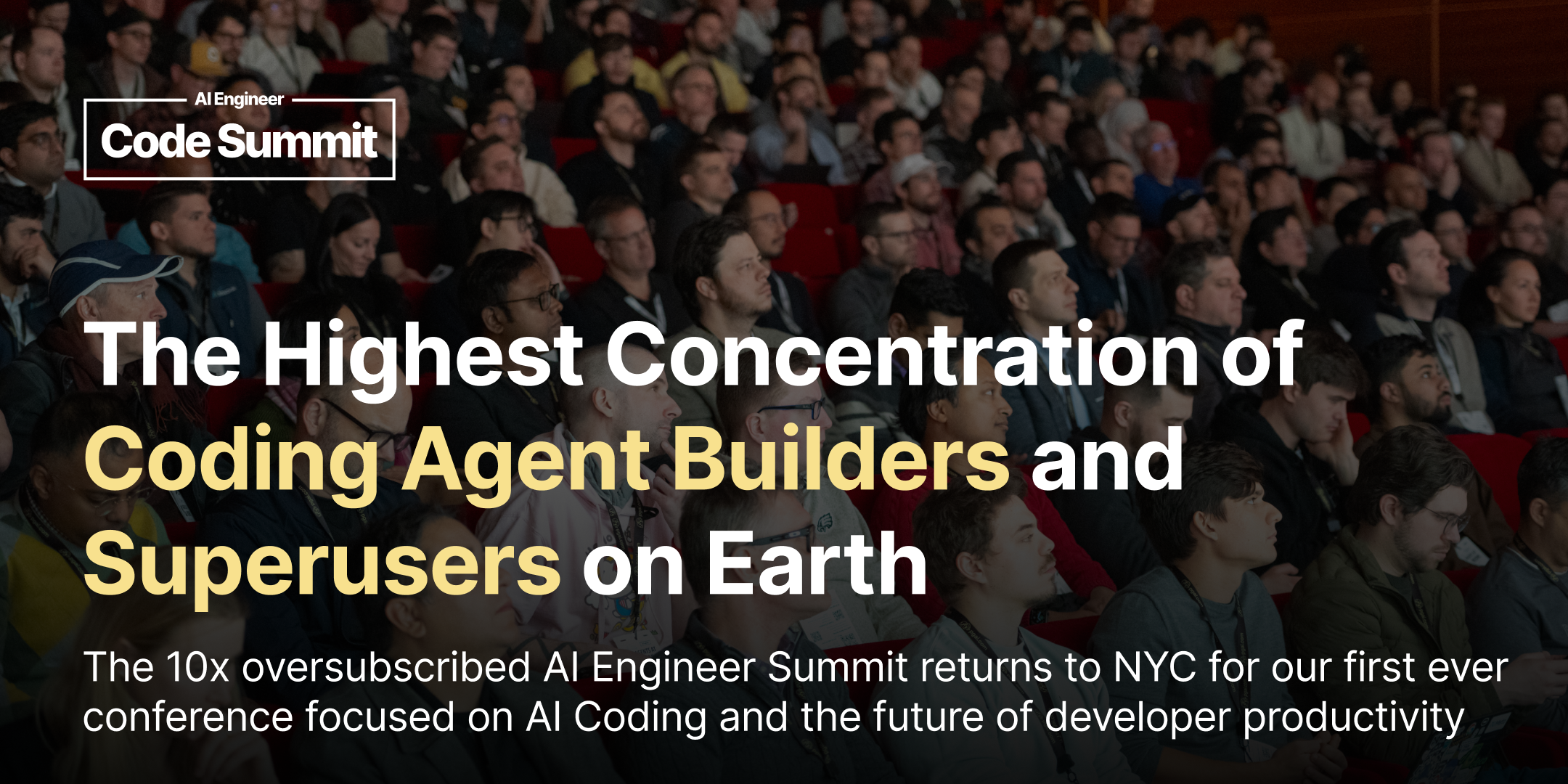 For the first time we are convening AI Engineer CODE, our first Summit exclusively focused on Coding Agents! We are convening the top AI Coding builders and expert users in the field to share their work, and recap the best of 2025 in Code.