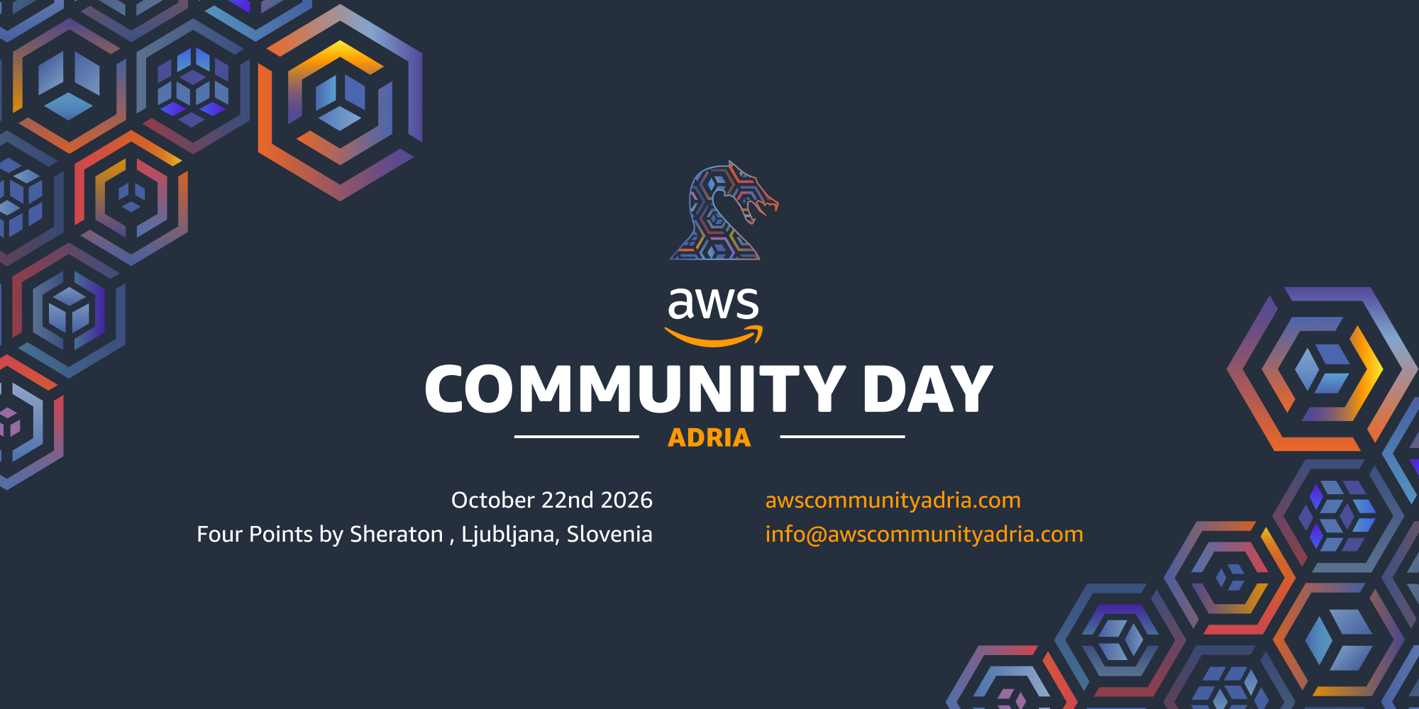 AWS Community Day Adria moves across different Balkan cities each year, bringing together the brightest minds to explore the latest in AWS, cloud computing, and modern tech trends. Whether you're a developer, architect, startup founder, or IT decision-maker, this event is designed to inspire, educate, and connect. This year, we’re coming to Ljubljana, Slovenia, for a full day of cutting-edge technology, expert-led sessions, and invaluable networking opportunities.