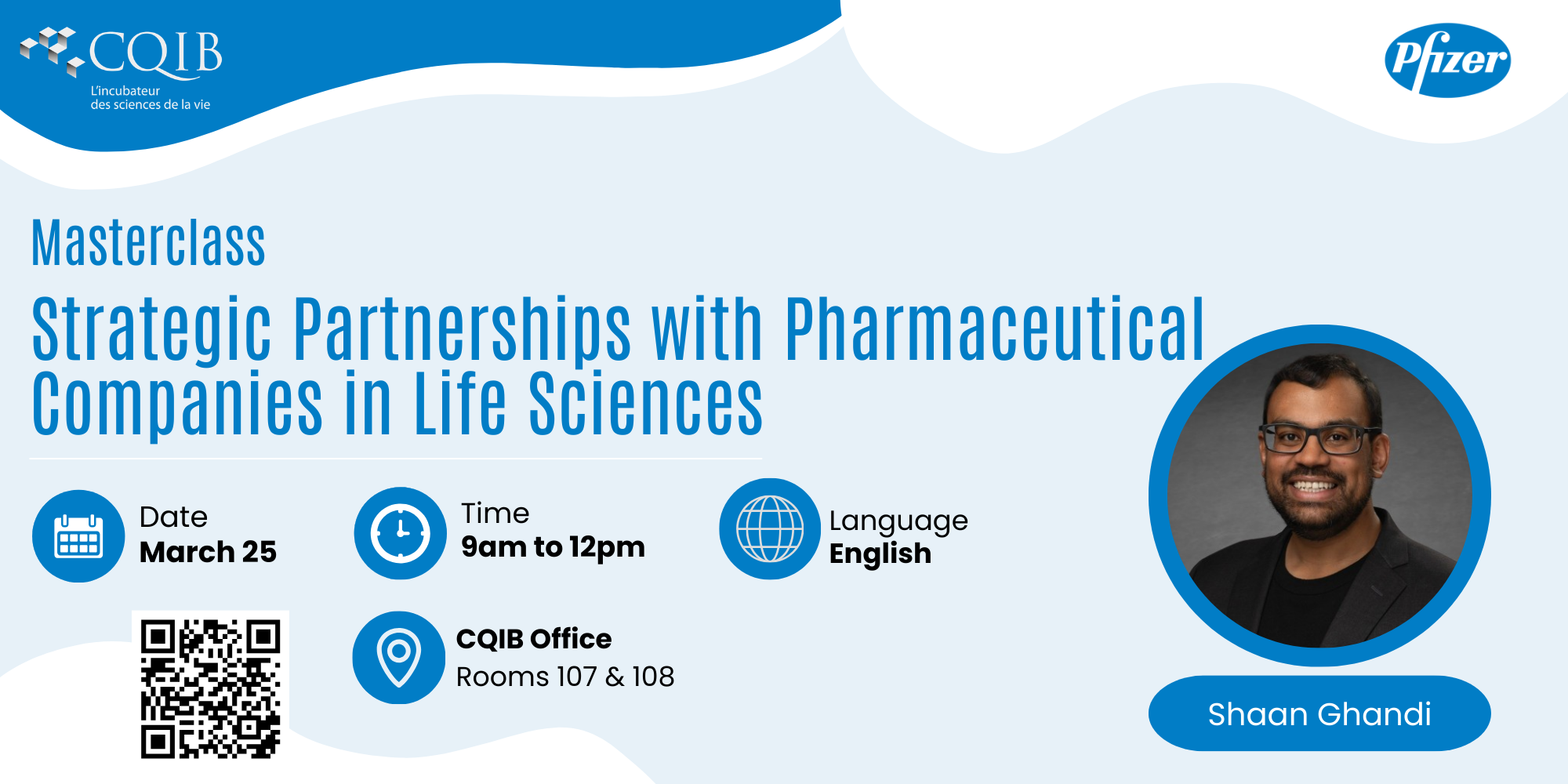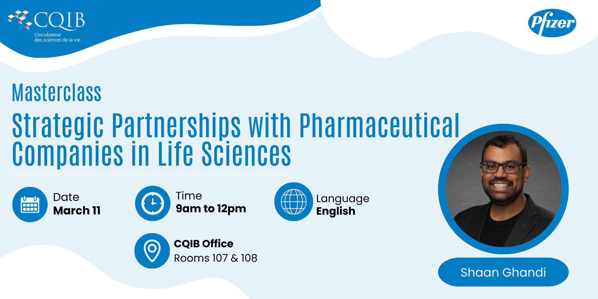 The CQIB is proud to welcome Pfizer for an exclusive masterclass designed for life sciences startups and growing companies looking to build meaningful partnerships with pharmaceutical leaders.