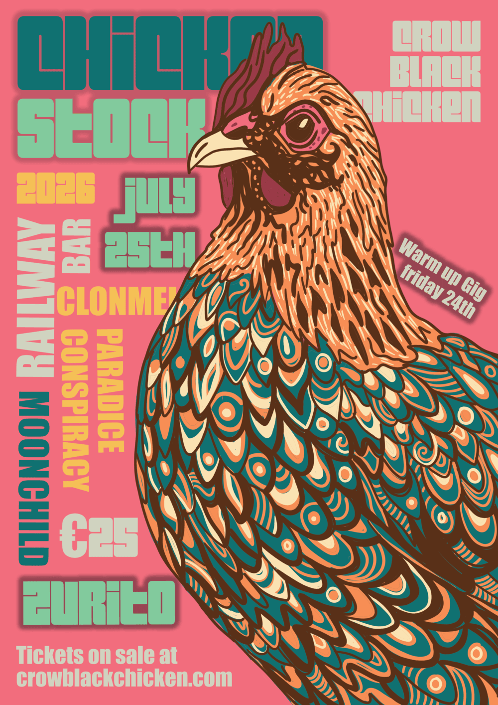 Get ready to rock Clonmel like never before—Chicken Stock is back, and it's bigger, louder, and more electrifying than ever, brought to you by Clonmel’s very own Irish blues‑rock powerhouse, Crow Black Chicken! 🎸