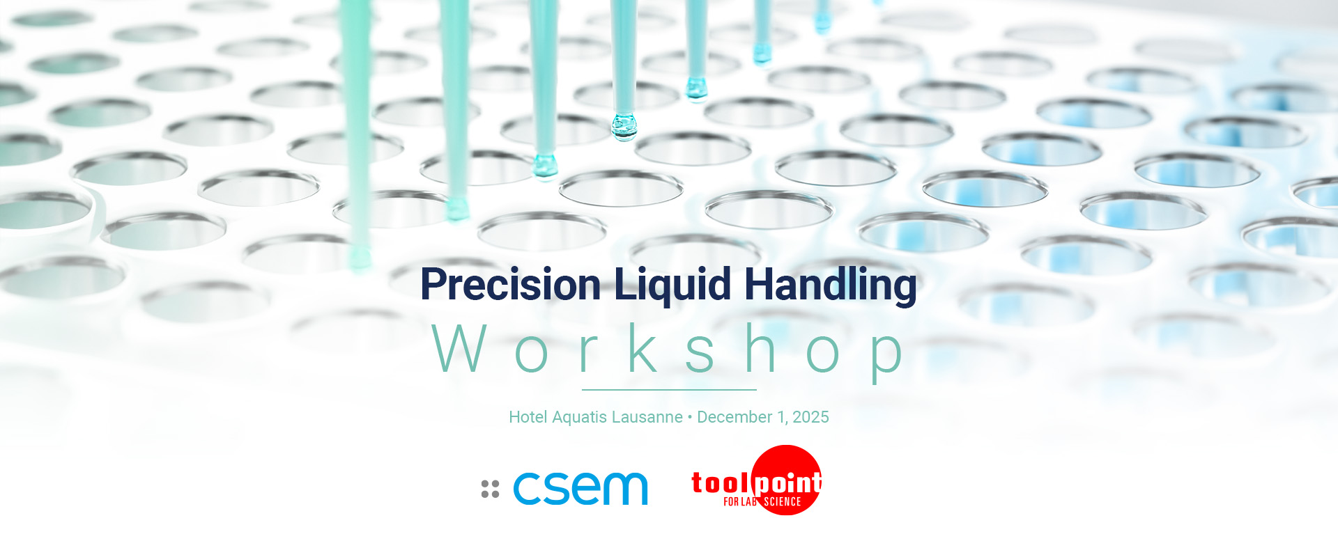 Join us for the Precision Liquid Handling Workshop, a one-day event co-organized by CSEM and Toolpoint, bringing together experts from biotech, pharma, diagnostics, automation, and research.