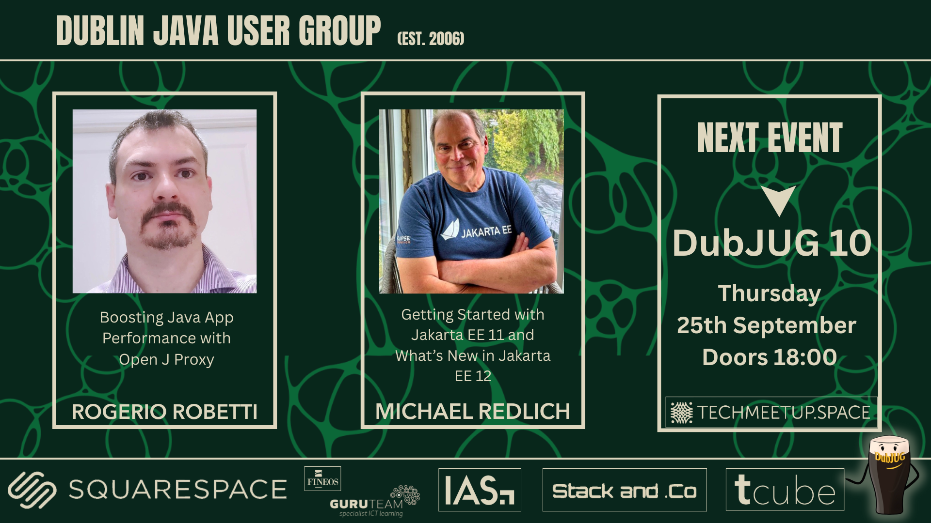 Since 2006, the Dublin Java User Group, aka DubJUG, has been working with the global Java community to amplify technical knowledge for the benefit of Irish based developers and businesses. It is a resident member of Dublin's TechMeetup.space.