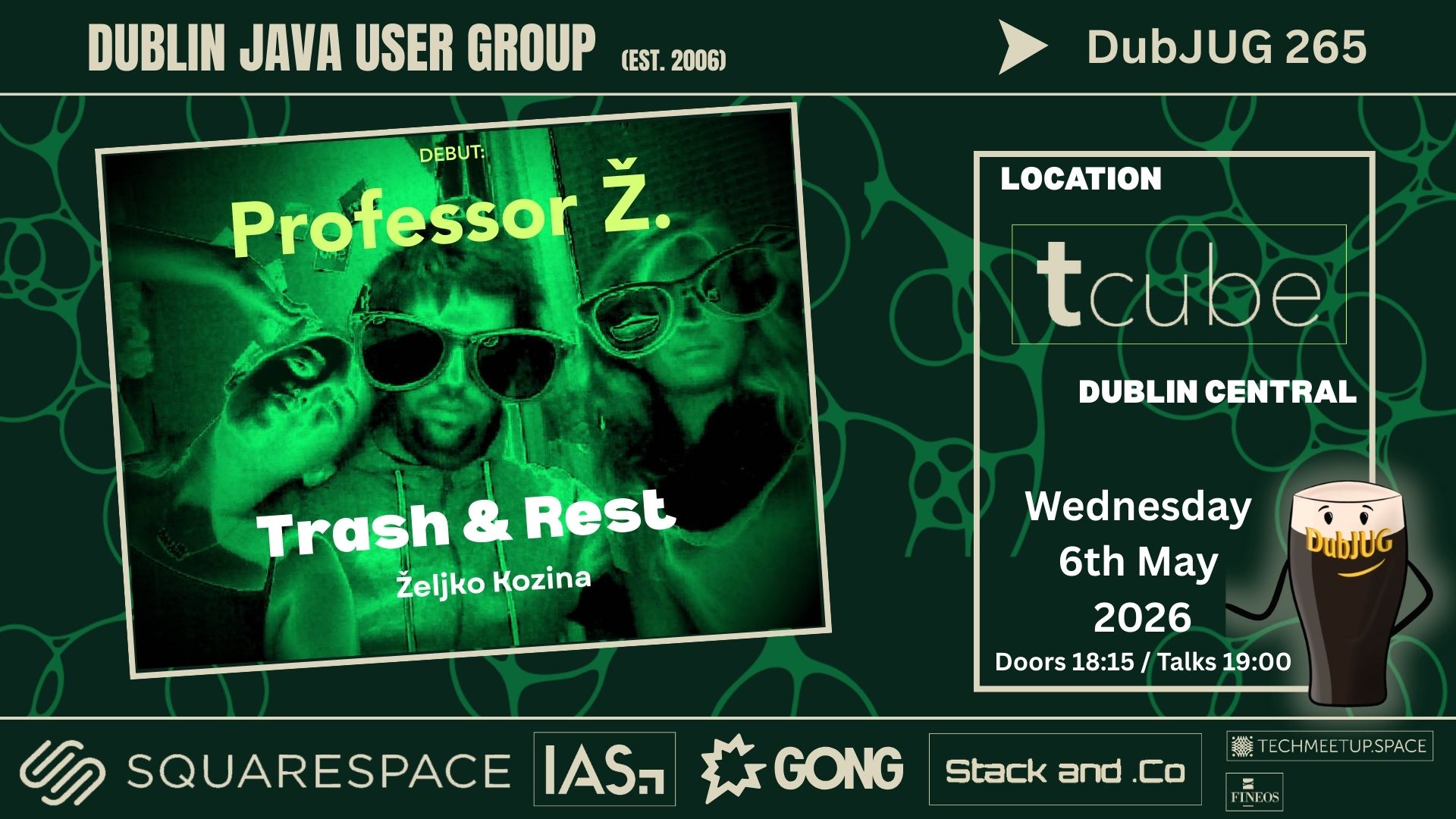 Since 2006, the Dublin Java User Group, aka DubJUG, has been working with the global Java community to amplify technical knowledge for the benefit of Irish based developers and businesses. It is a resident member of Dublin's TechMeetup.space.