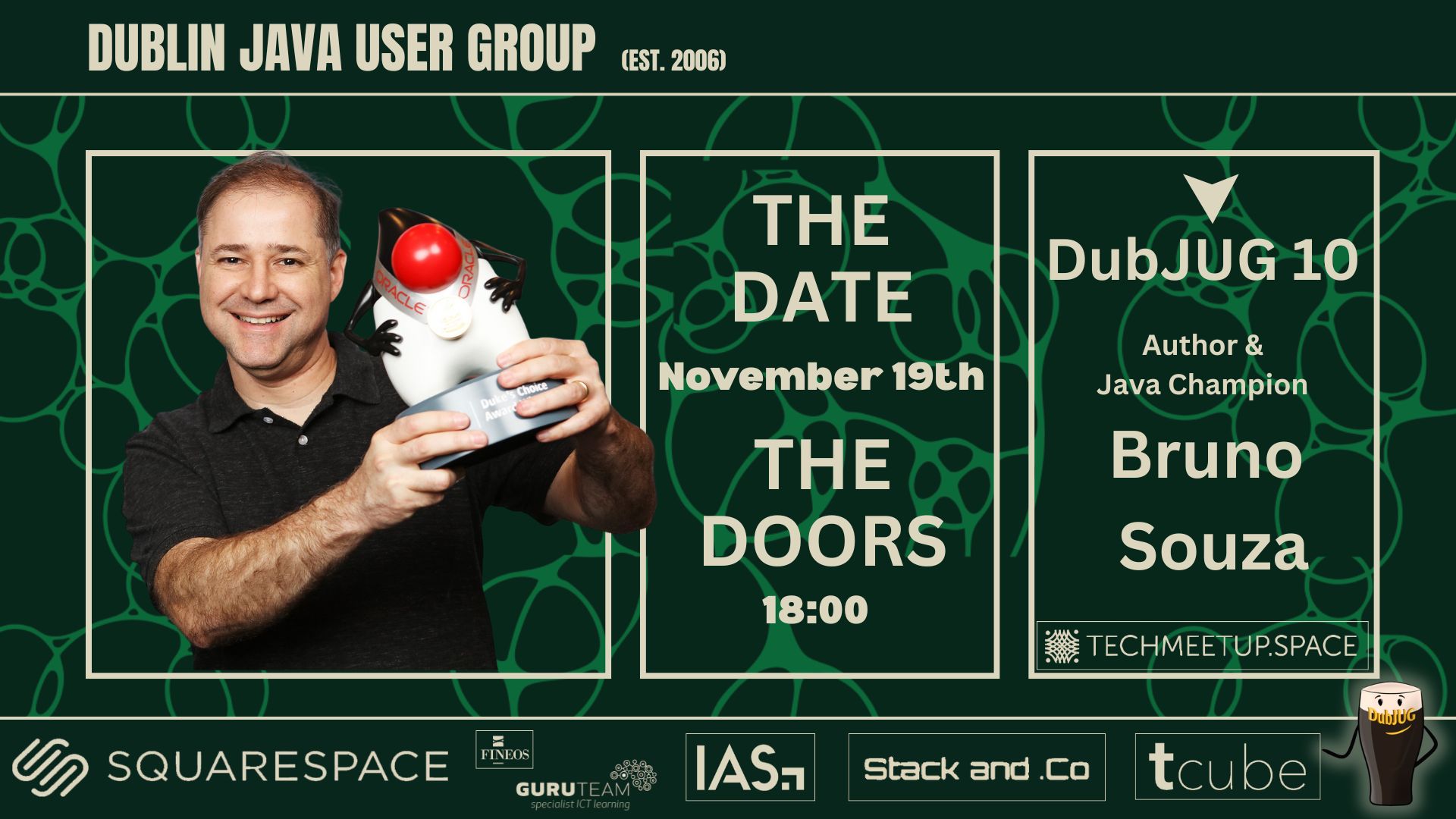 We're privileged and fortunate to welcome Bruno Souza back to the Dublin Java User Group the evening of November 19th. Bruno is known worldwide helping Java developers accelerate their careers beyond coding. It's a night not to be missed if you're in a rut, want inspirational strategies to get ahead, or even to become a Java rockstar yourself!