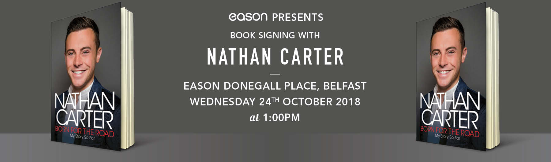 We are delighted to welcome Nathan Carter to Eason Donegall Place Belfast to sign copies of his new book "Born for the Road". This is a FREE event but a ticketed one.