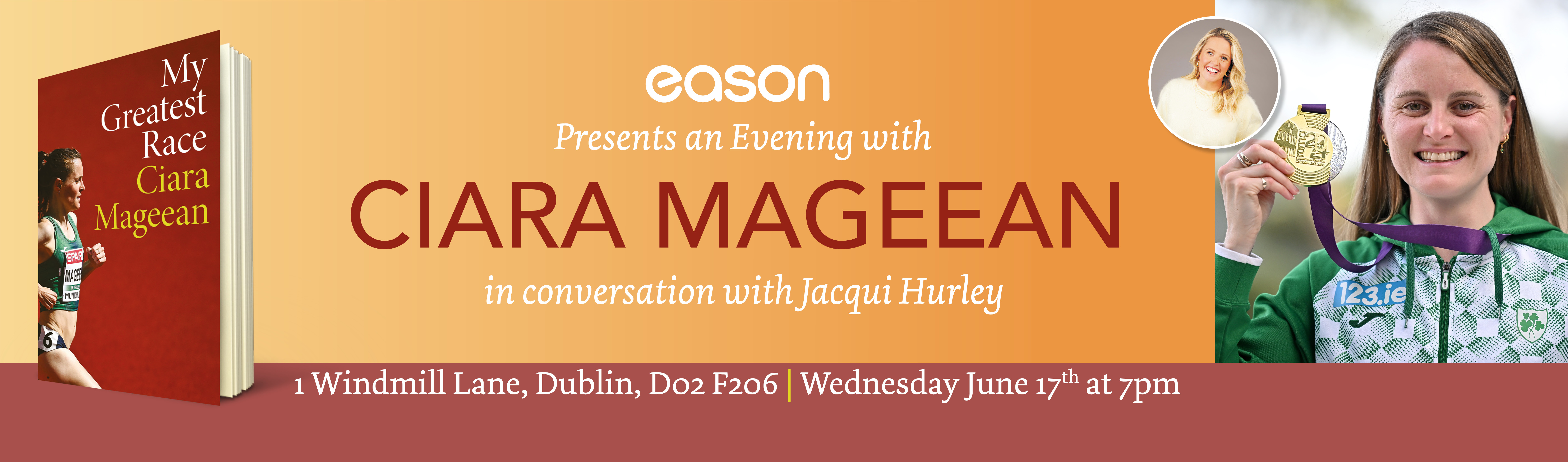 We are delighted to host an evening with Ciara Mageean to celebrate the launch of her new book My Greatest Race. The European 1500m champion, two-time Olympian and multiple Irish record holder, will be in conversation with broadcaster Jacqui Hurley in 1 WML on June 17th. Join us to celebrate the publication of her memoir, hear from Ciara and have your book signed on the night.