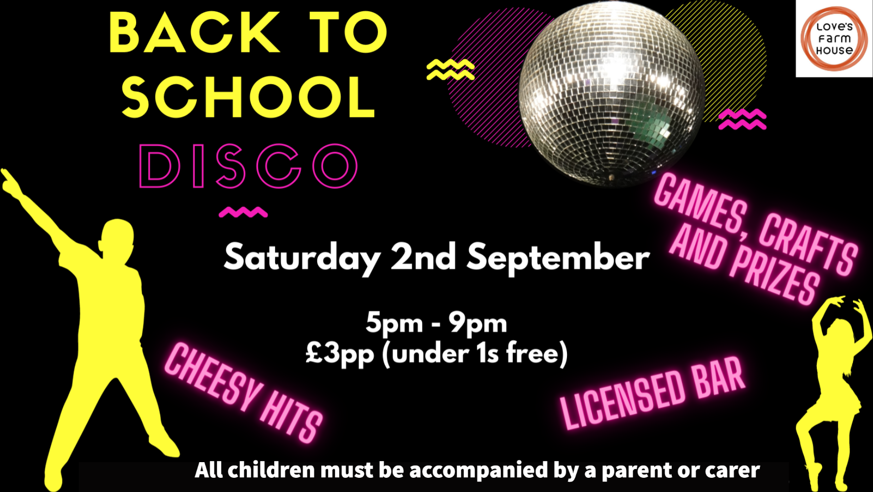 What better way to celebrate a new school year than with a Back to School Disco on Saturday 2nd September from 5pm-9pm. No uniforms required!
