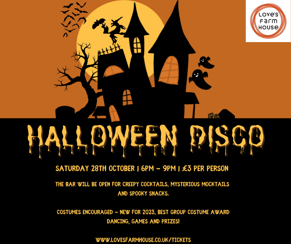 As always, Love's Farm Haunted House will be transformed with the help of our disco lights and plenty of spooky decorations. We will have terrifying tunes on the dance floor, ghoulish games and creepy crafts for the kids, and of course plenty of Halloween themed cocktails and mocktails at the bar. Fancy dress is strongly encouraged, but not essential.