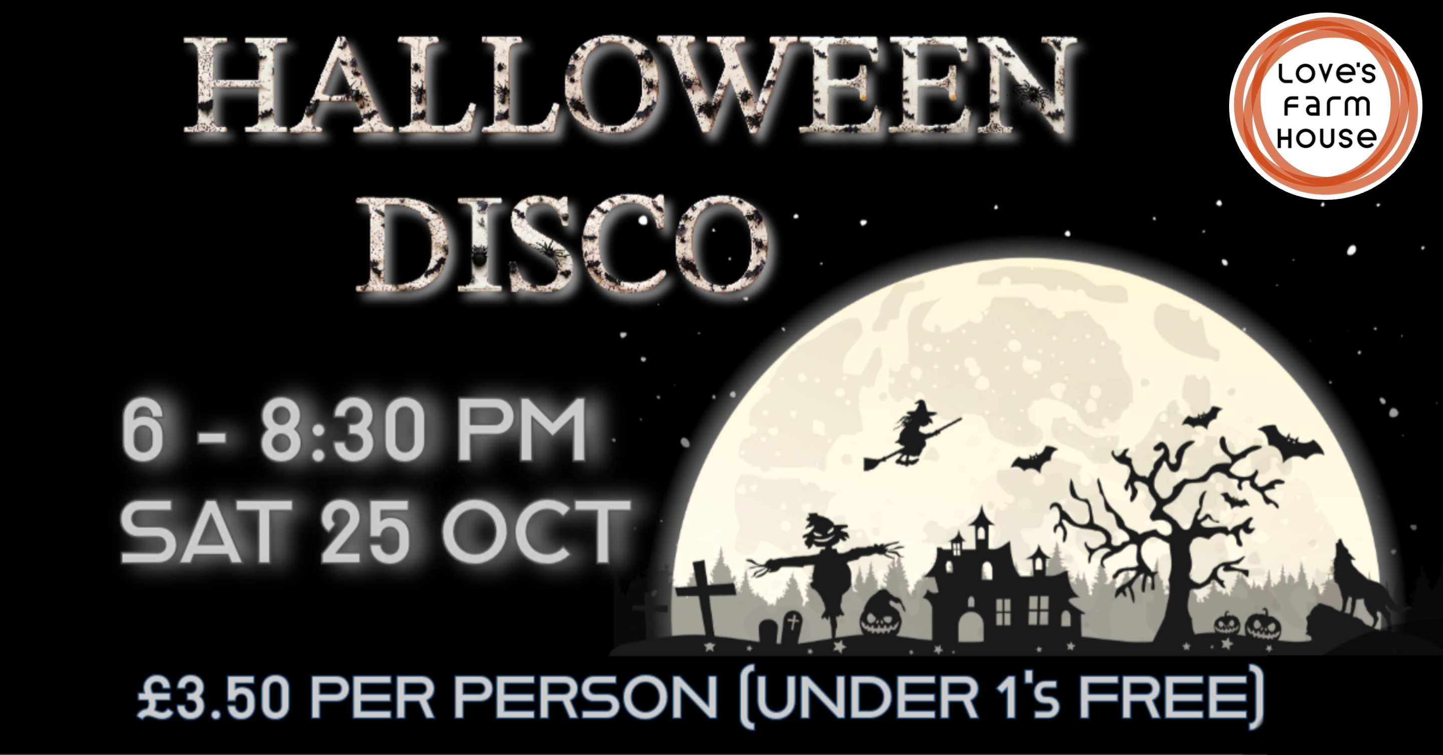 It's time to get your tickets for our most popular event of the year, the Love's Farm House Halloween Disco.... Coming to Love's farm House on Saturday the 25th October, from 6pm!! Bring your friends and family and dress up for the occasion: we have prizes for the best individual and group costumes and we can't wait to see what you come up with!