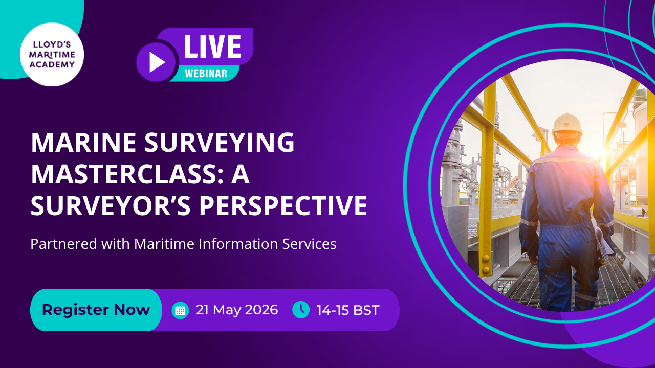 Join Lloyd’s Maritime Academy Course Directors Allan Larsen and Gemma Hancock as they share their extensive expertise in marine and small craft surveying. This webinar will explore key knowledge areas, practical applications, and essential skillsets for professionals in the maritime industry, with a focus on real-world challenges and solutions.