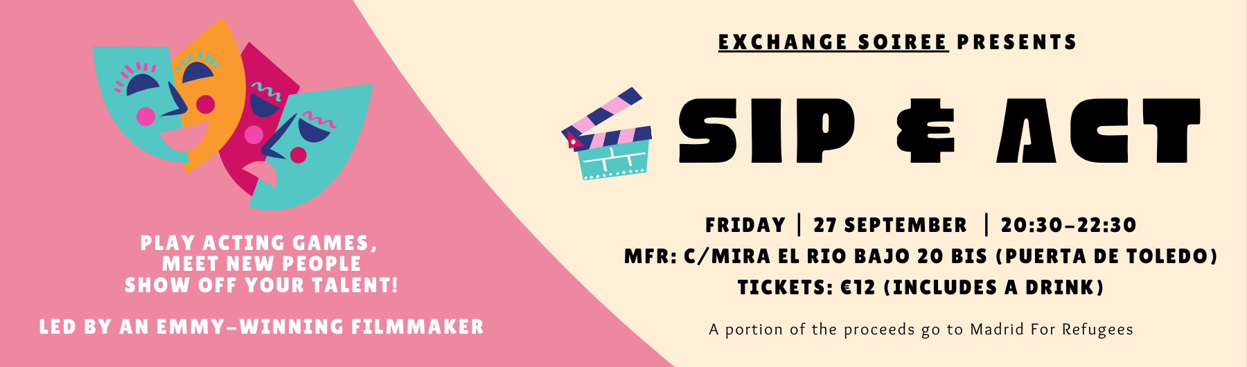 Sip & Act is part of Exchange Soirée, an independent creative social series exploring interactive cultural experiences in Madrid.