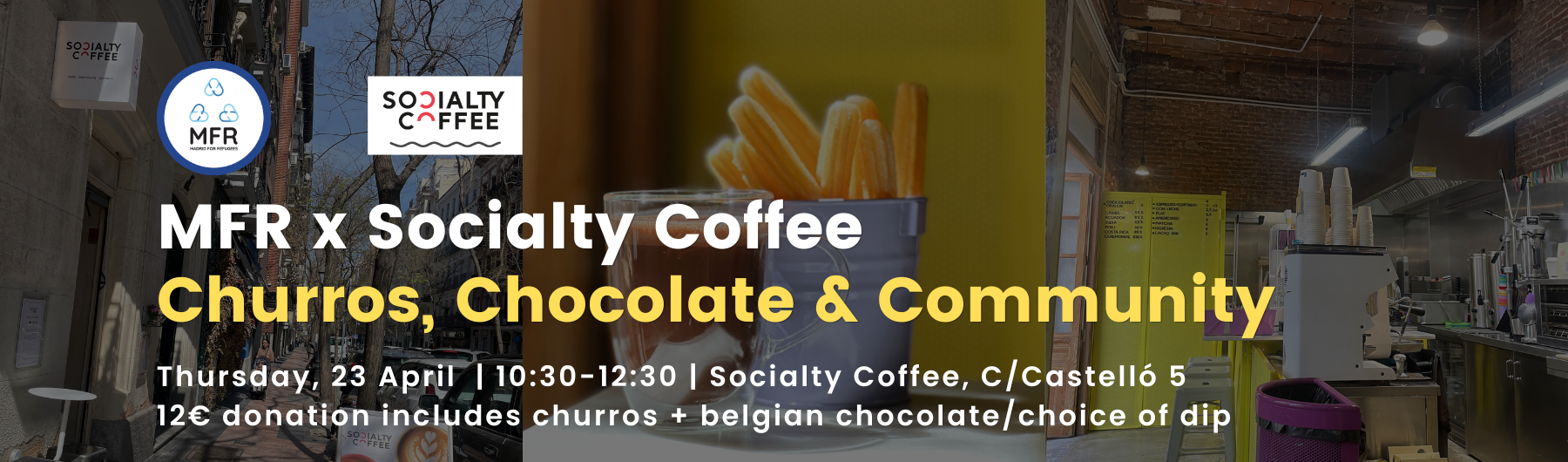 Join us for a warm morning of churros, chocolate, conversation, and connection at Socialty Coffee — a social enterprise in the heart of Madrid where the team is made up of refugees.