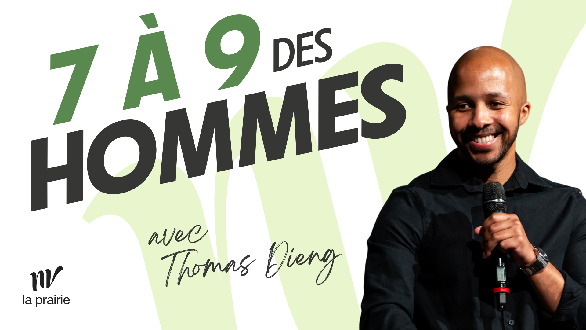 Nous avons le plaisir d'inviter tous les hommes de NV La Prairie à une soirée spéciale. Au programme : Un temps de connexion et de partage. Un temps d'adoration dans la louange. Des bouchées et des rafraîchissements. Un message inspirant avec pasteur Thomas.