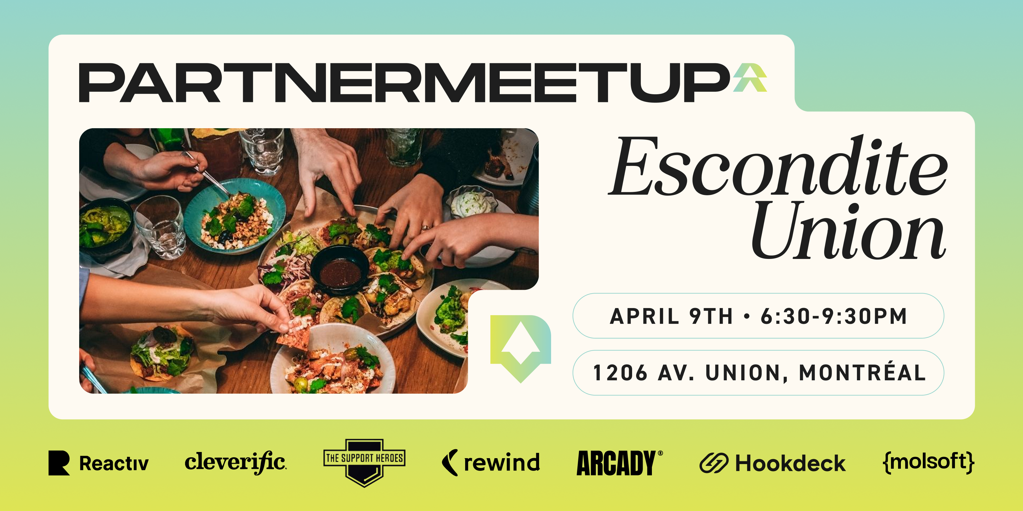 Join us as we head to Montreal for the first time at Partner Meetup! We'll see you at the Escondite Private Room for some incredible Mexican food and drinks, as well as networking of course. See you there!