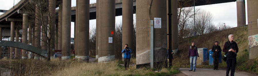 Spaghetti Junction comprises two railway lines, two rivers, three canals and thirteen and a half miles of motorway. Underneath the monolithic flyovers is a unique landscape which the 210,000 drivers who use every it every day never see, from the calm of Salford Reservoir to the hidden forests under the concrete brutalism and rhythmic noise of the flyover itself.