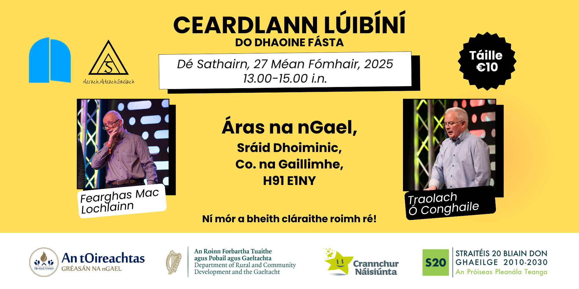 Sa cheardlann seo, beidh deis agat do scileanna a fhorbairt i gcumadh agus i ndearadh lúibíní, i suíomh fáiltiúil, spraíúil agus Gaelach. Níl aon taithí de dhíth ort – níl uait ach fiosracht agus toilteanas chun triail a bhaint as!