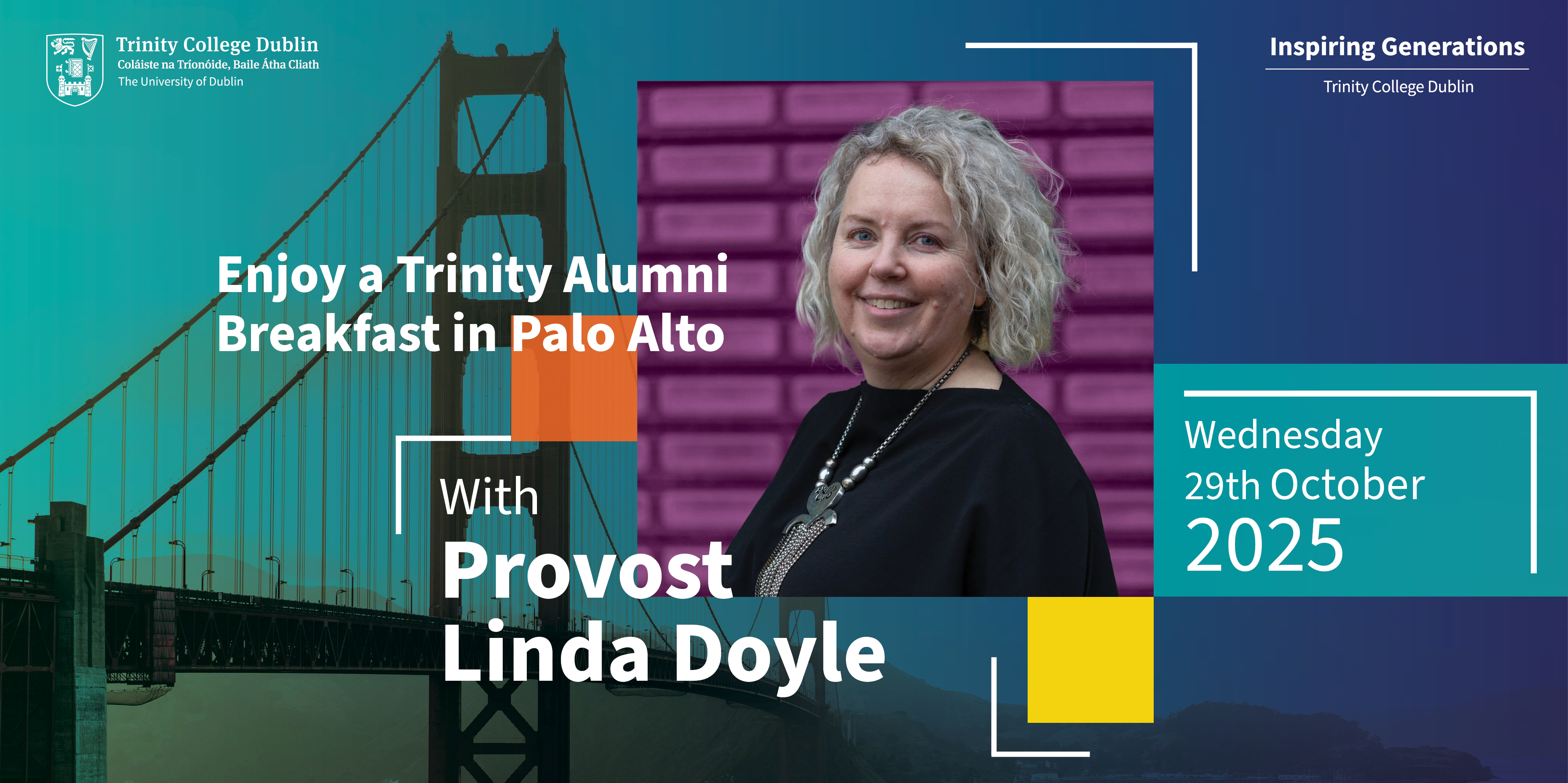 Join us at CANOPY in Menlo Park for an alumni breakfast hosted by Provost Linda Doyle and start your day off in friendly fashion alongside fellow alumni! She will share her thoughts and insights on range of current issues from AI to Sustainability and will give insights into Trinity's role as a leading hub of innovation both in Ireland and globally.