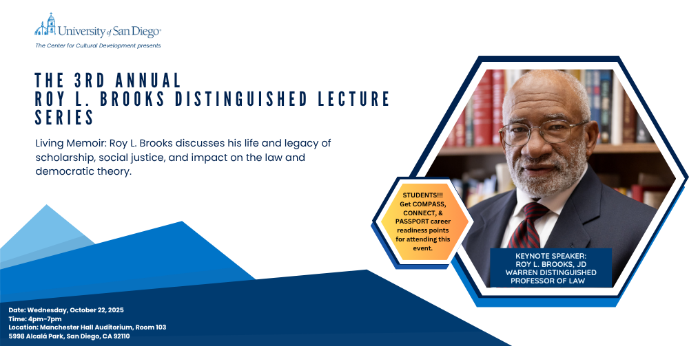 On behalf of the Center for Cultural Development, please accept this invitation to attend the 2025 Roy L. Brooks Distinguished Lecture Series, Wednesday, October 22, from 4pm-7pm at Manchester Hall Auditorium, Room 103.